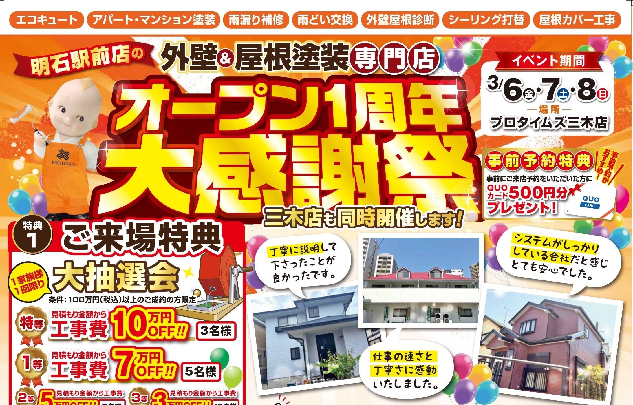 プロタイムズ三木店 同時開催!|明石駅前店1周年大感謝祭|3月8日(日)