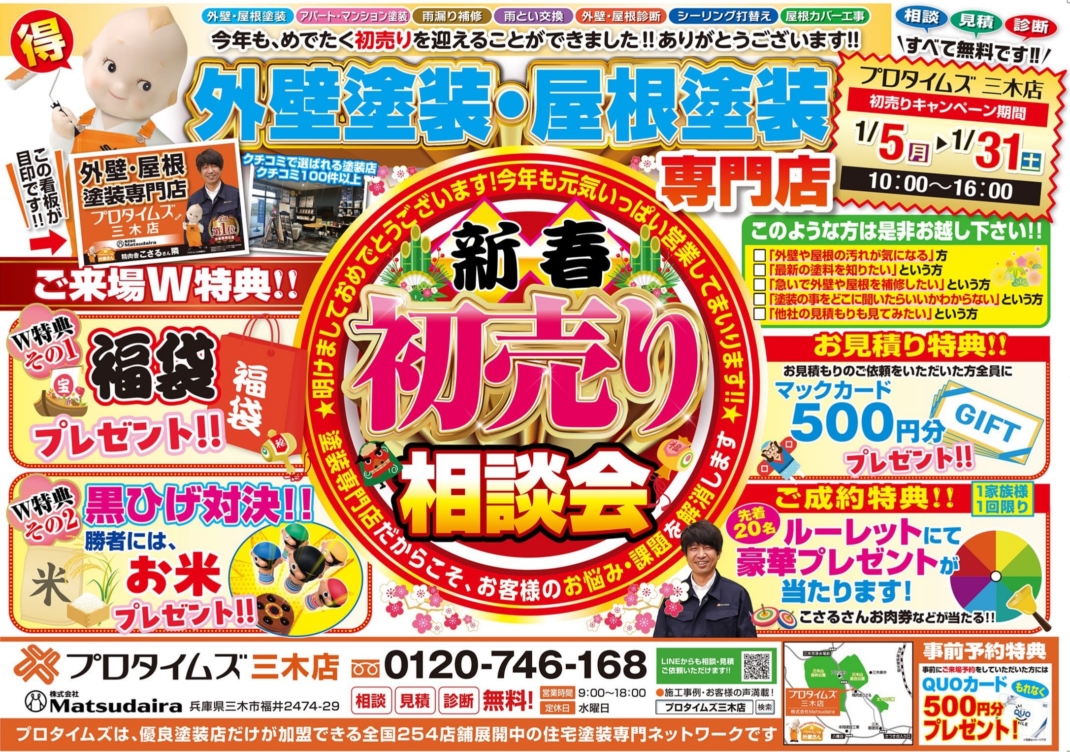 【新春初売り】プロタイムズ三木店で「外壁塗装・屋根塗装の初売り相談会」を開催します!